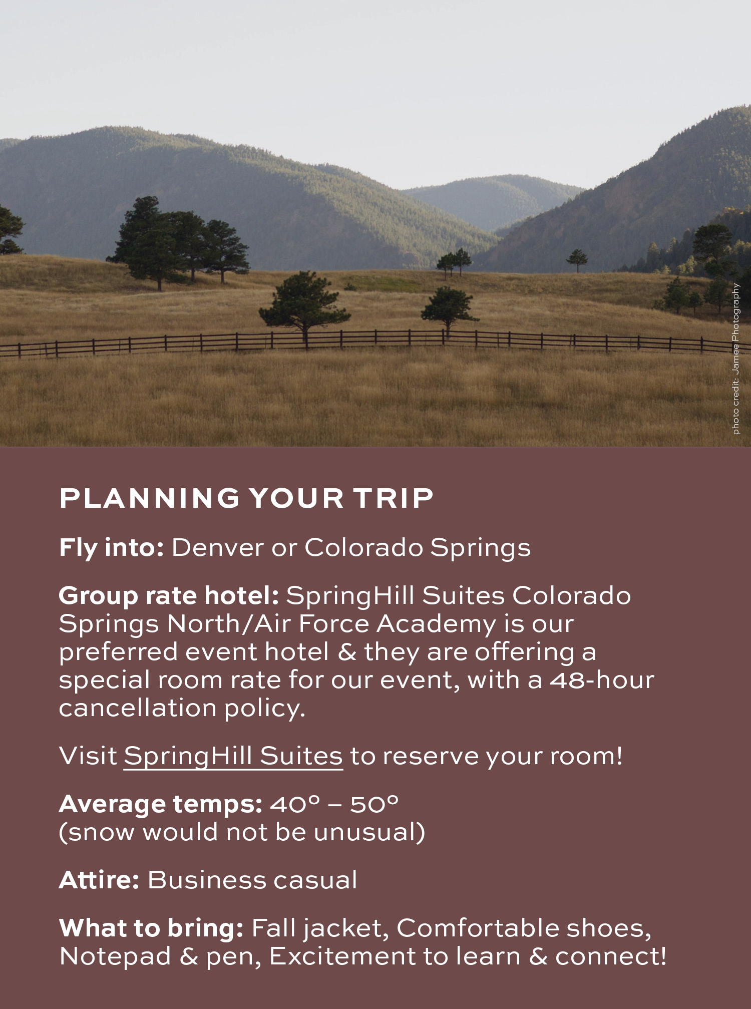 Can’t join us in Colorado? Join us virtually for $247. This gives you total access to the conference wherever you are, and a full swag bag that you’ll receive by mail.